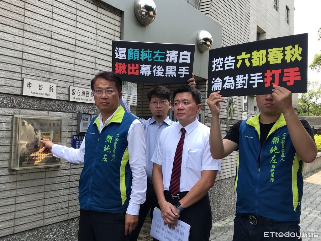 ▲民進黨台南市第一選區立委初選參選人顏純左,到台南地檢署按鈴申告,控告1家網路媒體報導不實,涉嫌對他加重誹謗。(圖/記者林悅翻攝)