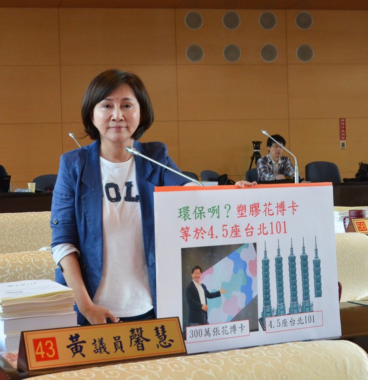 黃馨慧表示,去年5月11日,她就反對交通局製作300萬張花博卡,因為現今塑膠貨幣逐漸被電子支付取代,政府大力推動「減塑」政策,而台中市政府竟然為了一場花博、一次性免費參觀用途而發行花博卡。