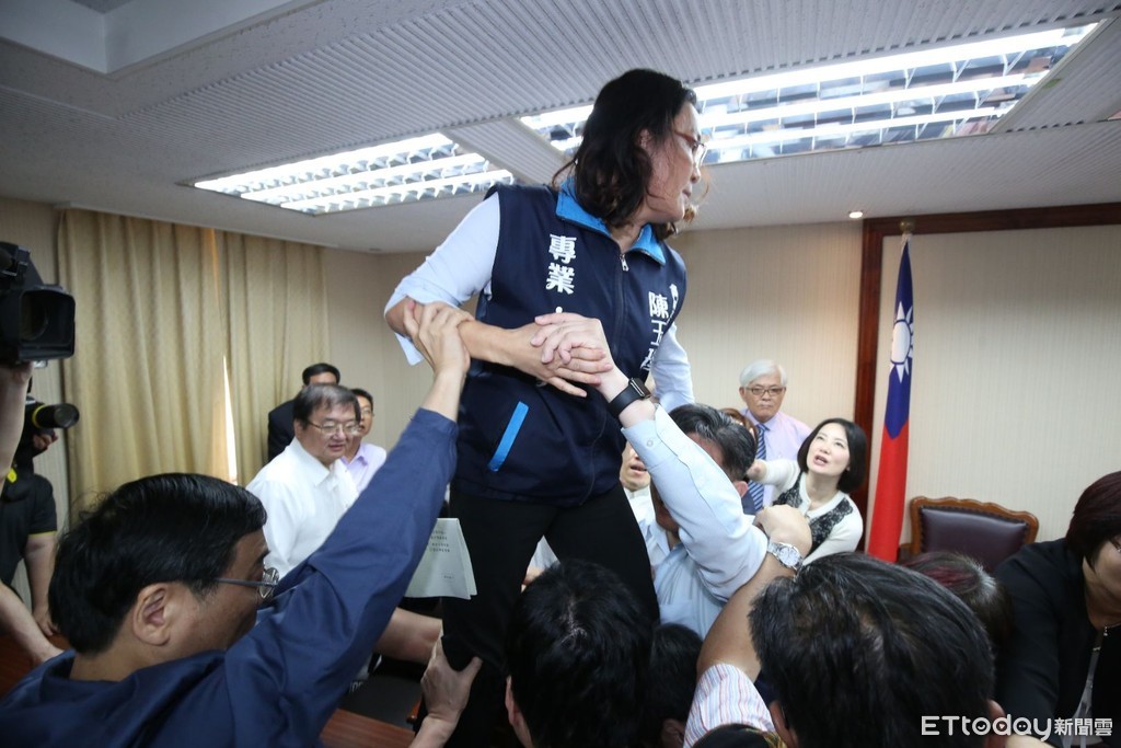 ▲無黨籍立委陳玉珍不滿遭嗆聲,憤而跳上會議桌與民進黨立委發生肢體衝突。(圖/記者屠惠剛攝)