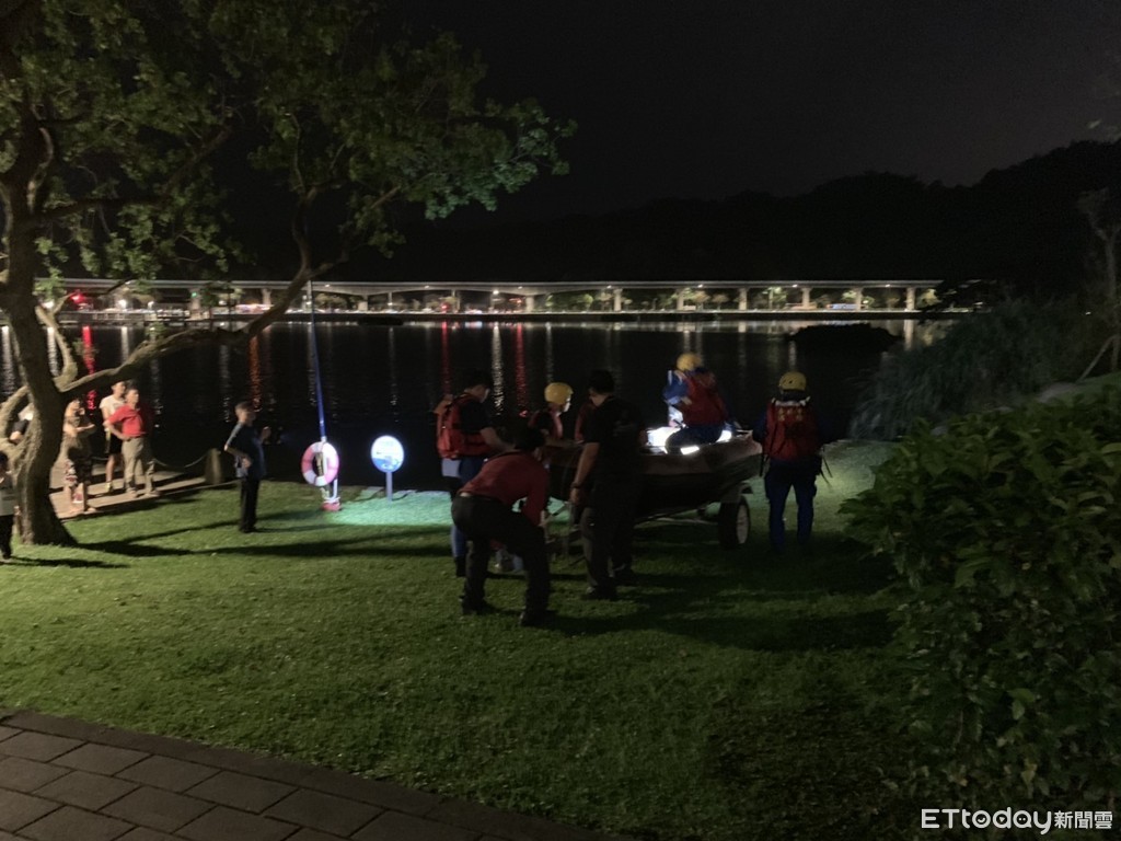 ▲台北市大湖公園傍晚驚傳民眾落水,警消人員搜救中。(圖/記者張君豪翻攝)