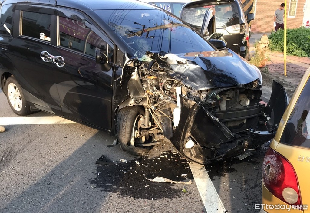 ▲無業男邊燒炭邊開車,衝撞路邊2輛車昏迷。(圖/記者李忠憲翻攝)