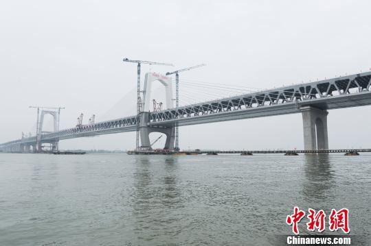 大陸安徽省蕪湖市的商合杭鐵路蕪湖長江公鐵大橋鋼樑26日合攏。據了解,這座公鐵大橋是集「客運專線、市域軌道交通與城市主幹道」三位一體的公鐵合建橋樑,北面橋塔高155公尺、南面橋塔高130.5公尺,是世界上首座「高低矮塔、公鐵兩用」的斜拉橋。