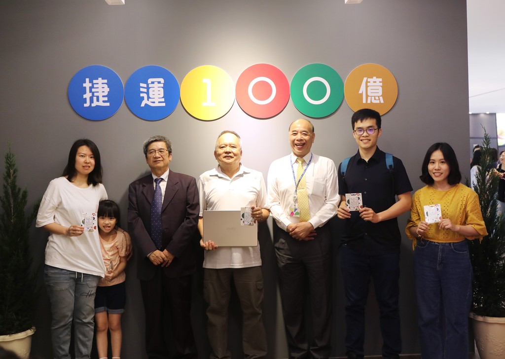北捷特地在26日下午舉辦頒獎典禮,除了兩位已先行領獎的旅客外,還邀請百億幸運兒黃先生以另外4名得獎者出席。其中,年紀最小的得主是國小一年級的小妹妹,當天跟媽媽一起出遊,結果母女兩人一起中獎;還有一位是