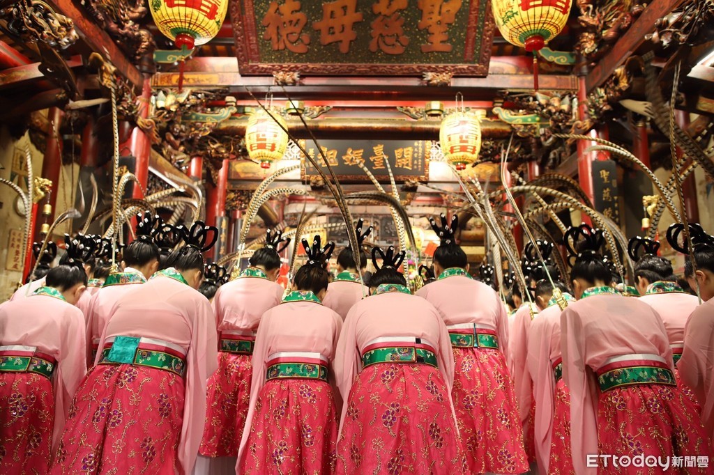 兩宮廟媽祖祝壽大典循古禮舉行,翁章梁擔任主禮官,主事者跪讀壽文,行獻酒、壽帛、壽桃、壽麵三獻禮及三跪九叩首禮,科儀莊嚴肅穆。