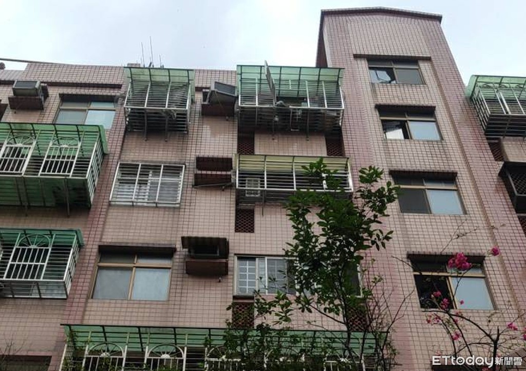 ▲民宅5樓鐵窗及冷氣機受氣爆波及而外斜,詳細原因待火調人員鑑定中。(圖/記者陳雕文翻攝)
