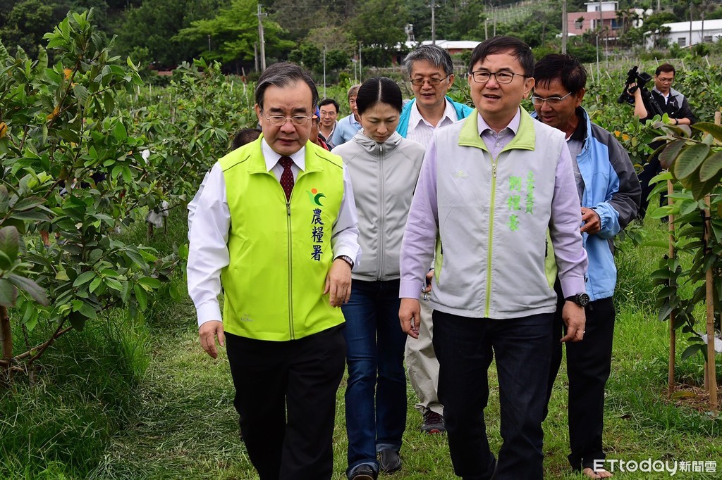 ▲立委劉櫂豪(右)特邀農糧署長胡忠一來台東釋迦園現勘。(圖/記者楊均典翻攝)