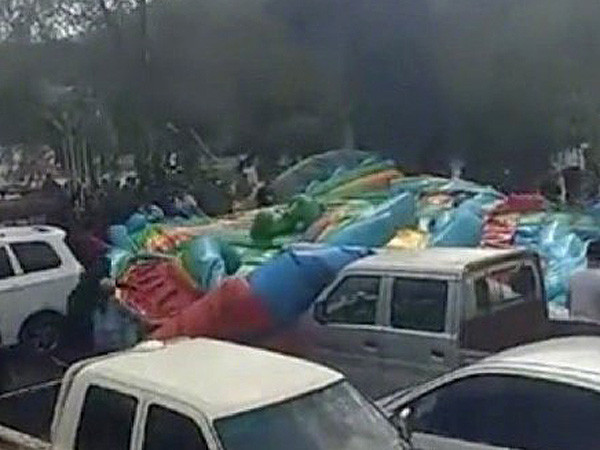 ▲龍捲風吹翻充氣城堡。(圖/翻攝自微博@新京報)