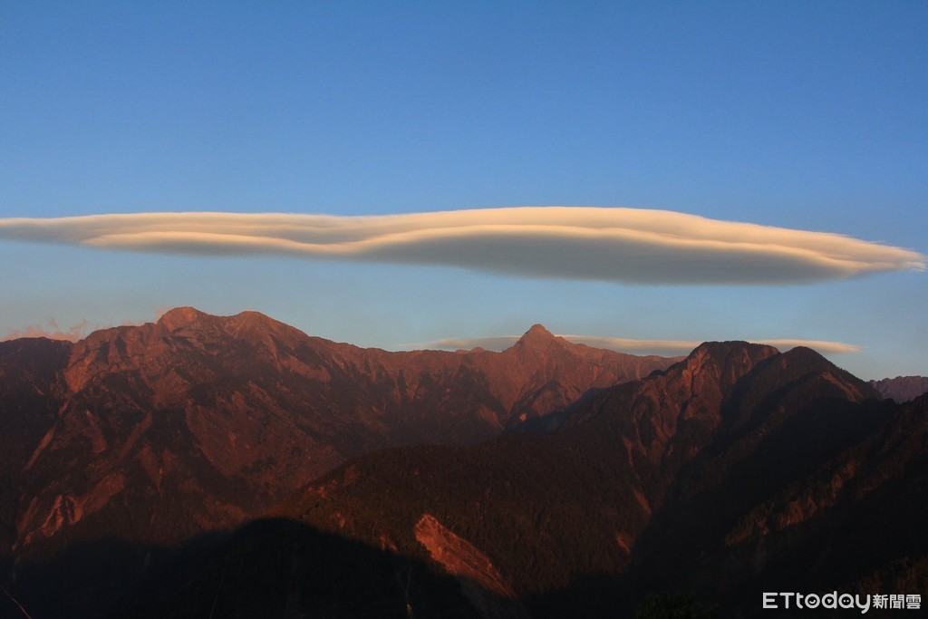 「飛碟來了!」近日鋒面報到,梅雨季節到來,在連日大雨之前,玉山山脈出現了美不勝收的景象,一整片《飛碟雲》大幅度籠罩玉山主峰與北北峰,如夢一般的景色,美的彷彿置身畫中,玉管處人員將其拍下,PO上臉書官網與民眾分享大自然的精妙。