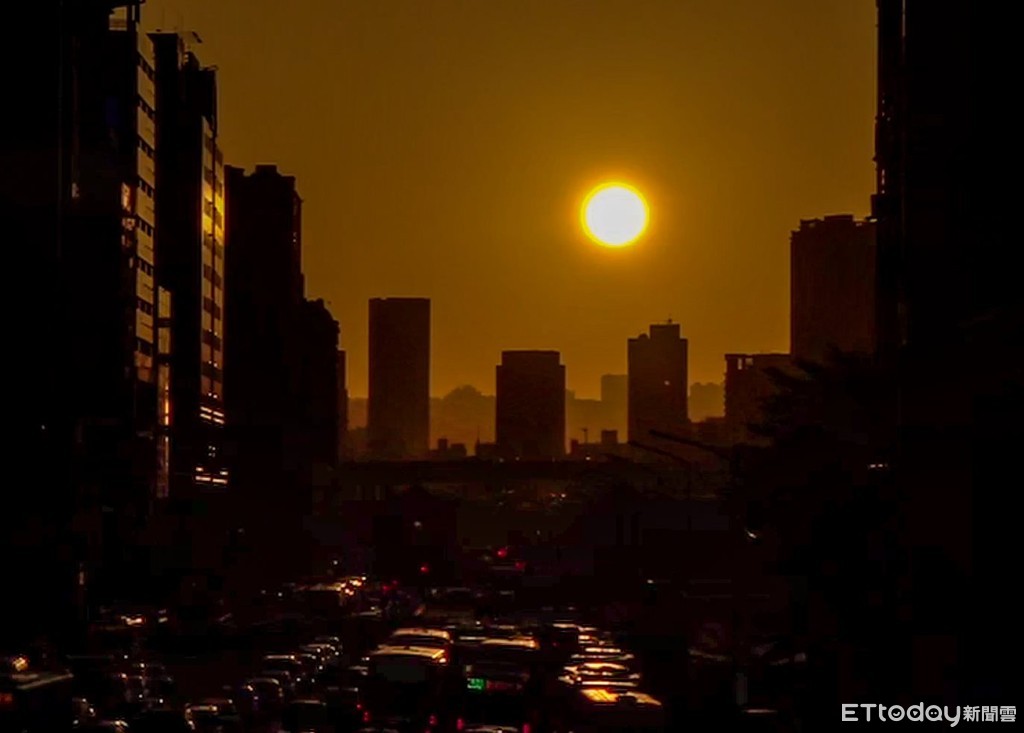 ▲5月3日忠孝西路「懸日」美景。(圖/記者呂佳賢攝)