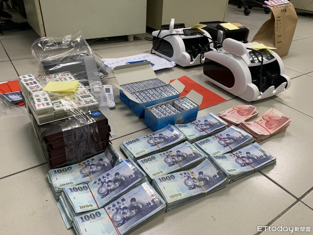 ▲桃園市警局龜山分局2日凌晨在龜山區查獲推筒仔職業賭場,查獲賭資95萬餘元等證物。(圖/記者沈繼昌翻攝)