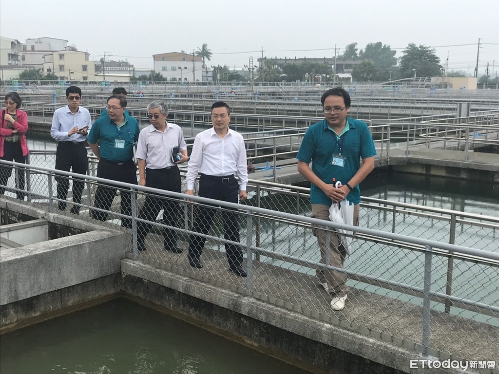 台水新任董事長魏明谷率員前往潭頂淨水場瞭解供水情形,聽取如何藉由監控系統(SCADA),隨時掌握各地監控點水壓,即時取得用戶端供水資訊,可達更精緻化調配供水,有效降低漏水率。一行人隨後前往安定區中崙加壓站,視察配水池上方設置的屋頂型太陽能發電設備運作情形。