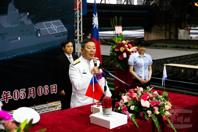 為落實國艦國造政策,國防部海軍司令部與臺灣國際造船股份有限公司攜手合作,打造「新型兩棲船塢運輸艦」,6日於臺船公司舉行原型艦開工典禮,由海軍司令黃曙光上將及臺船董事長鄭文隆代表出席。