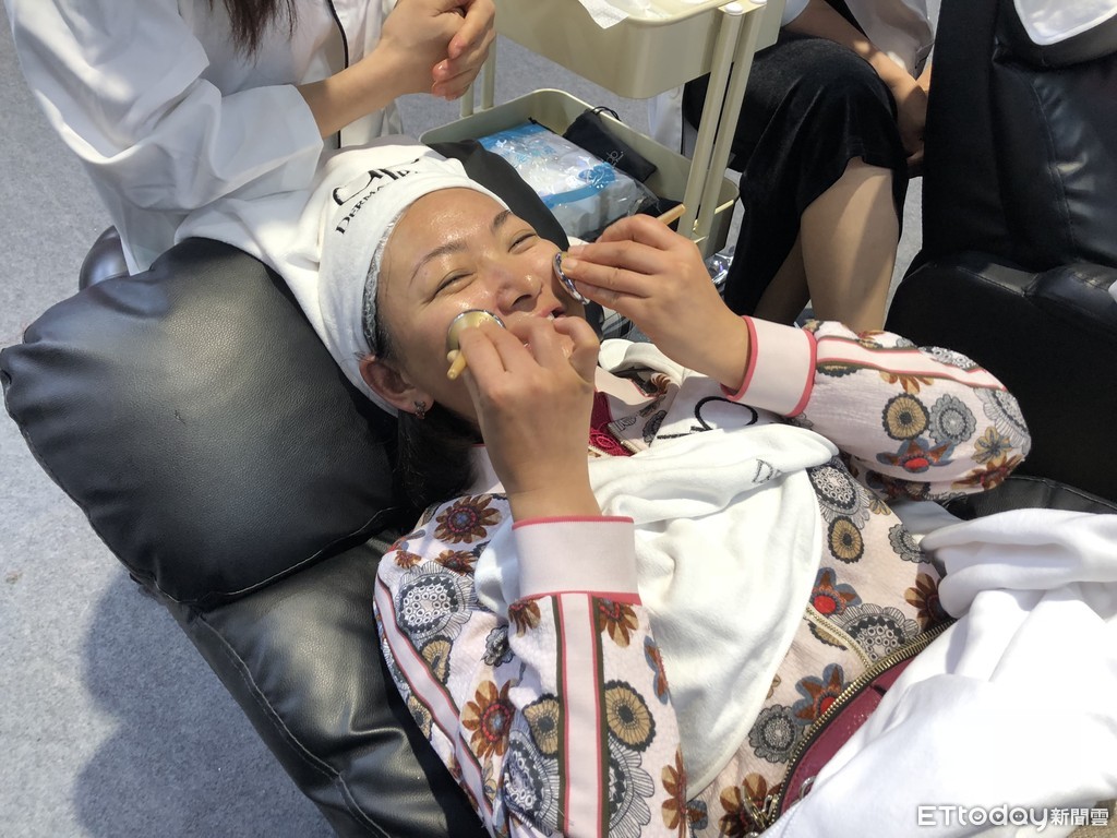 ▲上海美博會民眾體驗美容產品。(圖/記者魏有德攝)