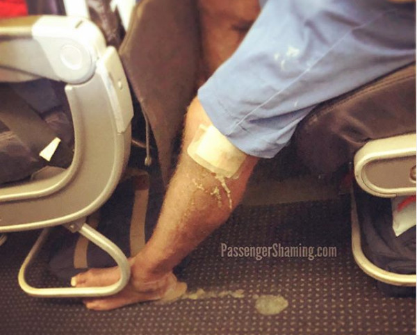 ▲客機上有乘客腿傷膿流一地。(圖/翻攝自IG@passengershaming)