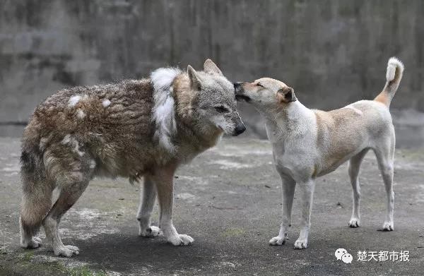 湖北武漢一座動物園內,有一隻在爭霸中敗陣負傷的狼王,由於離群索居,園方擔心其身體健康,因此嘗試將一隻母的中華田園犬放入其籠中,與之作伴解悶,想不到一狼一犬相處融洽,還時常互相梳理毛髮,曾經消沉的狼王如今也儼然成為「寵妻狂魔」。