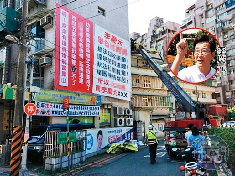5連霸的資深台北市議員李慶元遭控替樁腳出頭,逼市府對一家安親班開罰,還嗆安親班業者:「我就是要你關門!」該業者向本刊投訴,3年前因裝修工程遭鄰居惡意檢舉,他為了反制惡鄰提告,不料卻頻頻遭市府相關局處上門稽查、開罰,後來才知道鄰居是李的樁腳,官員也坦承受到李的壓力。法院去年初判決業者勝訴,鄰居要賠20萬元,李變本加厲,不但派助理跟蹤安親班學生,還嗆聲要讓安親班倒閉。去年底大選,李連任成功,鄰居之子還當選里長,安親班業者走投無路,考慮結束營業,也決定將李的惡行惡狀公諸於世!
