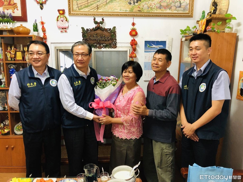 ▲移民署副署長鐘景琨(左2)到台東向新住民祝賀母親節快樂。(圖/記者楊均典翻攝)