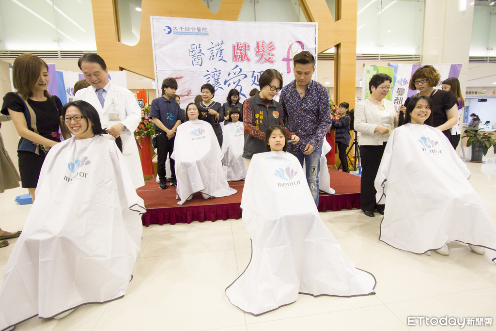 除此之外,也有「醫護獻髮」的活動,由大千護理部同仁、家屬及仁德醫護管理專科學校學生一同響應。「醫護獻髮」活動發起人解旻容督導表示,這次是第二屆的醫護獻髮活動,特邀仁德醫專護理科學生以及同仁家屬年僅7歲的林小妹妹一起參與,象徵傳承的意義。活動現場共剪8束頭髮,加上部分同仁提前先剪的頭髮,共13束全部捐贈給癌症希望基金會製作假髮,幫助癌友重拾美麗與自信心。