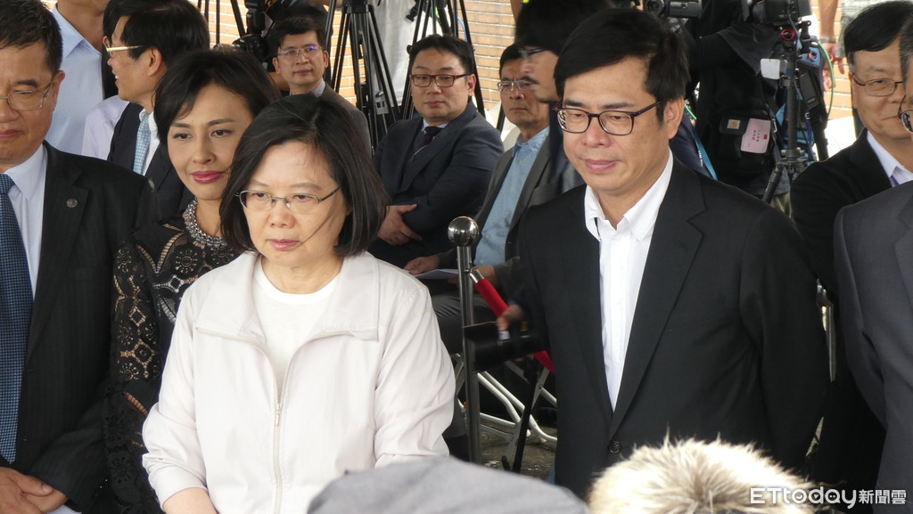 蔡英文9日下午赴高雄科技大學燕巢校區聆聽「高雄新市鎮開發為科學園區」進度報告,總統府秘書長陳菊、行政院副院長陳其邁、內政部長徐國勇、立委邱議瑩、立委邱志偉等人亦陪同出席。