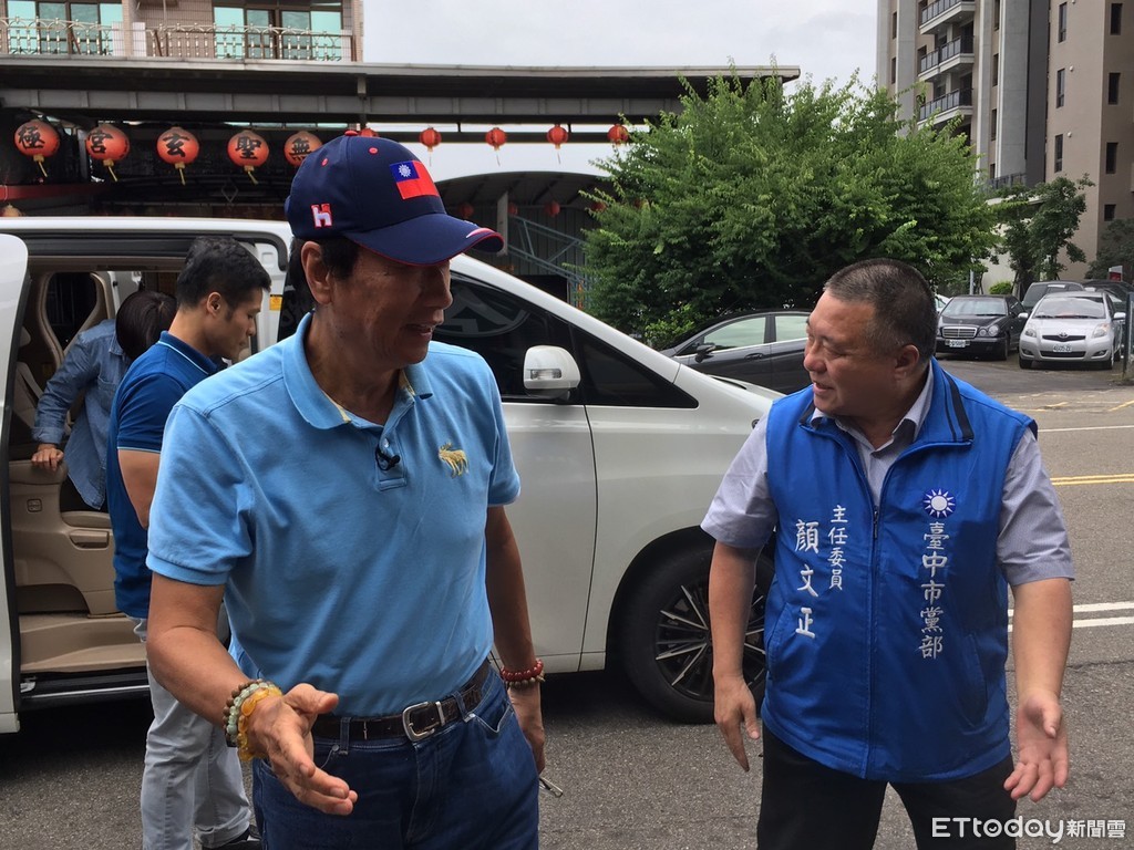 ▲郭台銘10日抵達台中,國民黨台中市黨部主委顏文正在外迎接。(圖/記者鄧木卿攝)