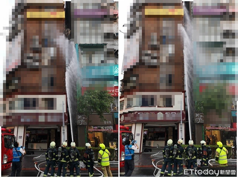 記者黃彥傑、邱中岳/台北報導台北市中山區南京東路二段附近11日下午發生一起火災意外,一間餐廳排煙管內部起火,目前消防隊已抵達現場,緊急搶救當中。▲餐廳排煙管內部起火。(圖/記者黃彥傑攝,下同)