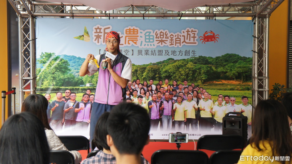 ▲ 板橋遠百中山店農夫學堂,青農韋峻文分享廢耕地復耕經驗。(圖/新北市農業局提供,下同)