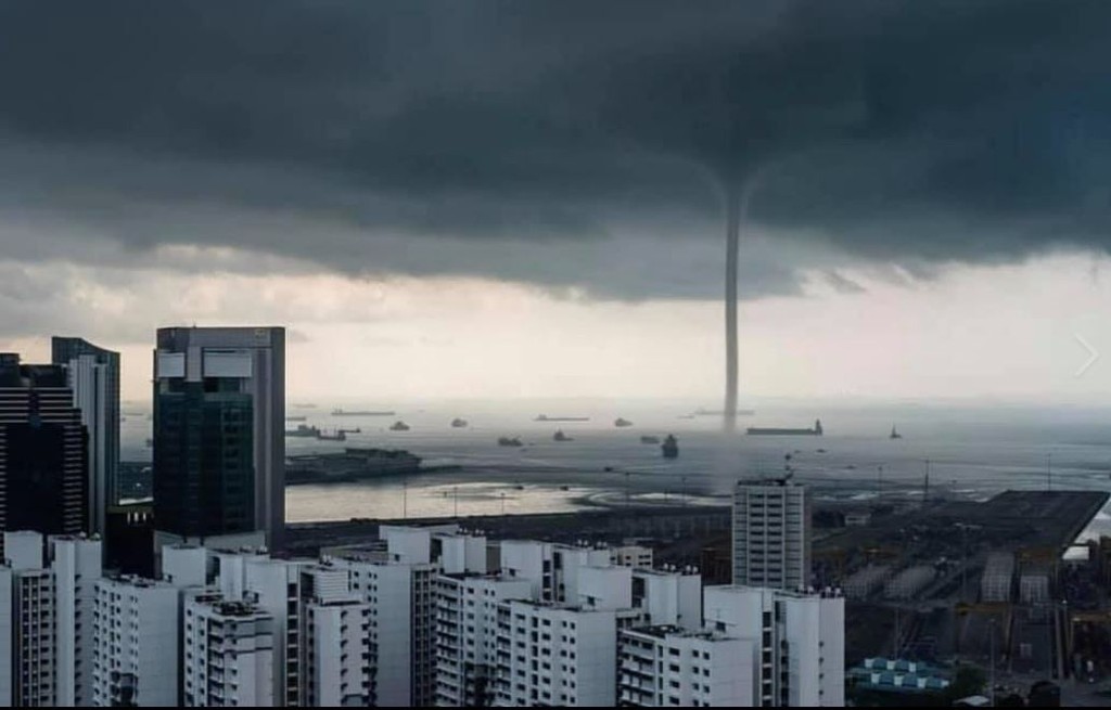 新加坡11日上午驚傳出現海上龍捲風,持續20分鐘左右,場面相當壯麗,而這起龍捲風看似像一條連接天空與海底的秘密通道。