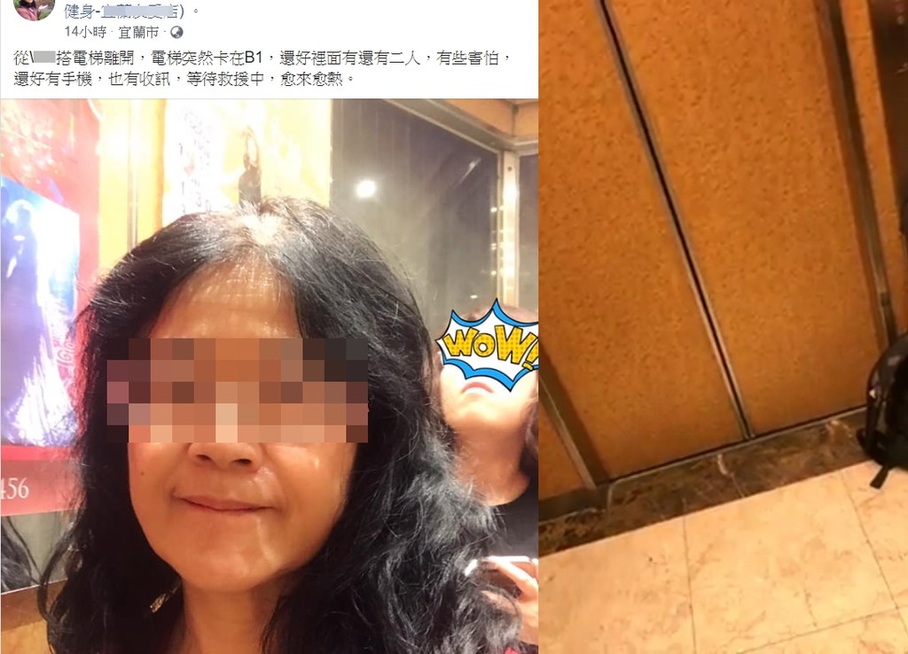 ▲受困電梯內的謝女以手機在臉書求救。(圖/翻攝自謝女臉書)