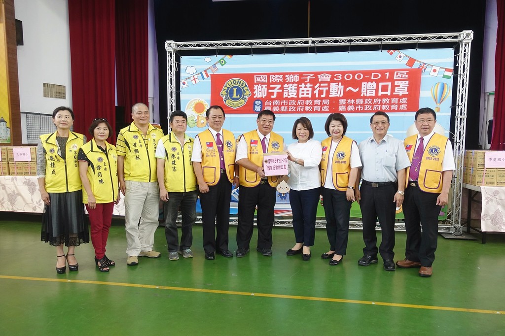 國際獅子會300-D1區為維護學童健康,保護兒童遠離各種傳染病,13日捐贈10萬片兒童用口罩給雲林縣、嘉義縣市及台南市國小學童。首站來到嘉義市民族國小舉辦捐贈儀式,由國際獅子會300-D1區鄭春源總監及第一副總監張秀華議員捐贈2萬片口罩,黃敏惠市長代表受贈,回贈感謝狀。