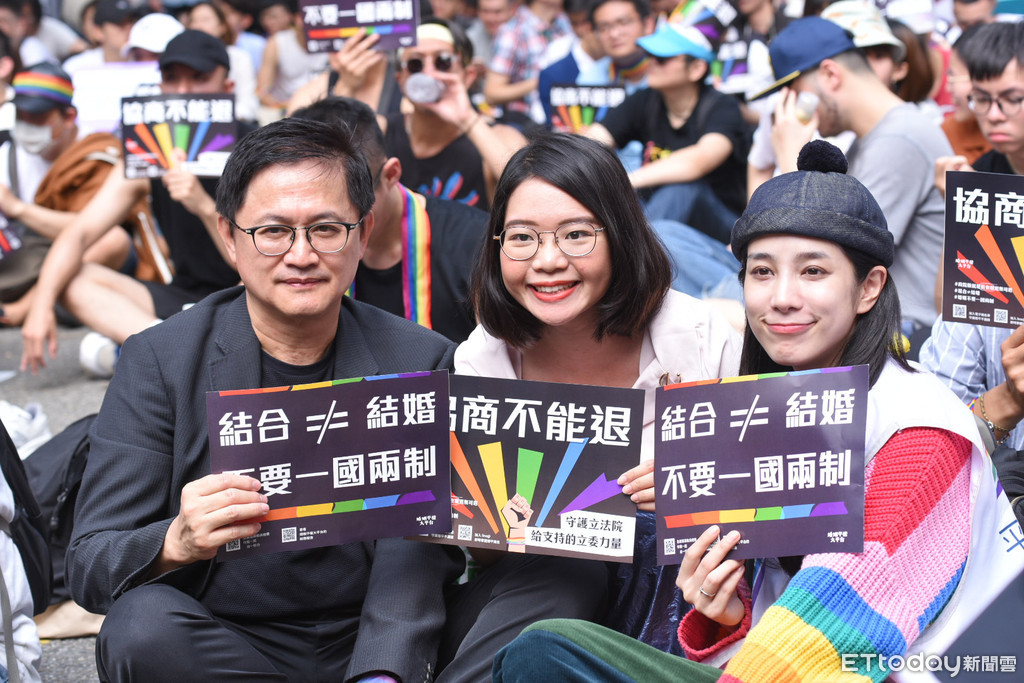 ▲同志支持者聚集青島東路聲援。(圖/記者林敬旻攝)