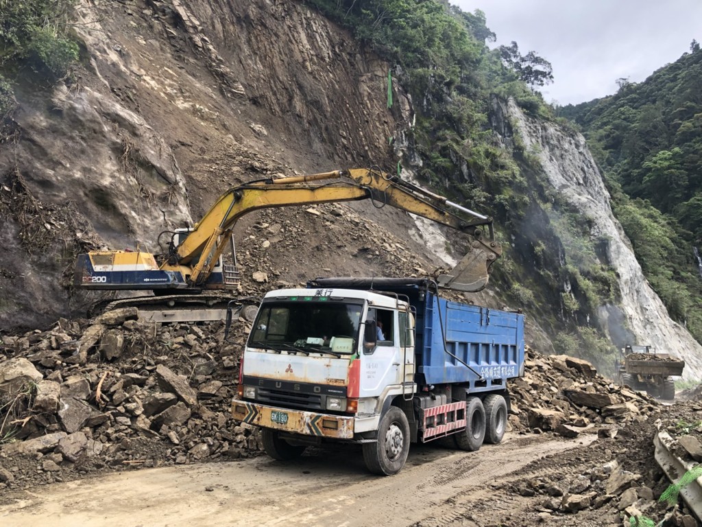 經公路總局阿里山工務段現場空拍結果,估計邊坡坍滑土石方量體逾7,000立方公尺,超出原預估值,且多為破碎岩塊,增加搶修困難度。為因應本次坍土石方量體,目前搶修投入機具包括,300型挖土機1部、200型挖土機2部、大型傾卸卡車2部、大型鏟裝機及小型鏟裝機各1部,共7部積極辦理搶修,由坍方兩邊同時搶修加速搶災進度。