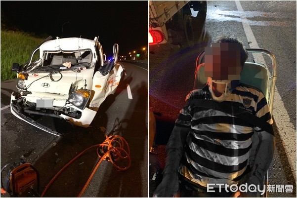 ▲男子一度受困變形的車體中,經救出後全身多處撕裂傷,送往大千醫院治療。(圖/記者黃孟珍翻攝,下同)