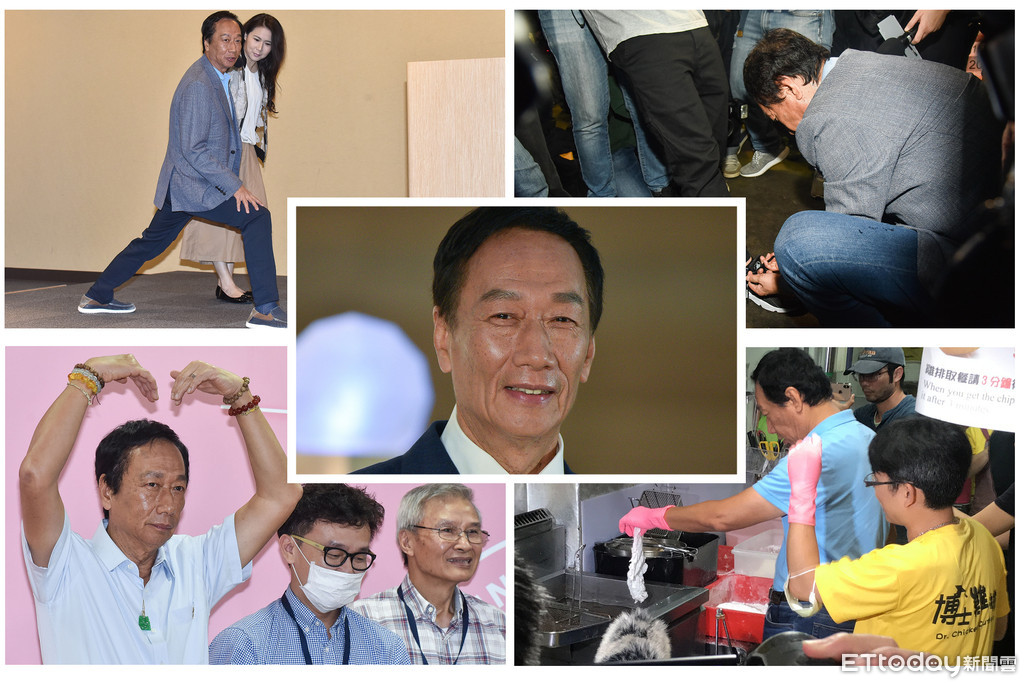 ▲郭台銘宣布參選滿月,幫記者綁鞋帶、炸雞排、提出治國雙腿論,在全國刮起「台」風。(圖/ETtoday資料照)