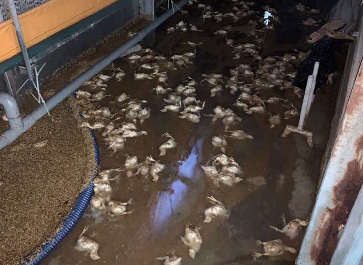 在新豐埔和村從事畜牧業的簡姓業者,也成為受災戶,他表示,牧場飼養了將近上萬隻雞,11日才引進一批幼雞,沒想到17日一場突如其來的暴雨,就讓9000隻幼雞死亡,心血一夕之間化為泡影。