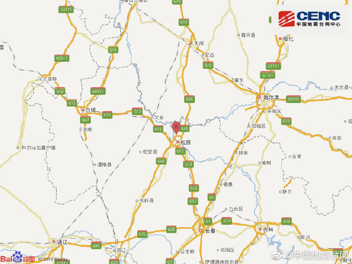 根據「中國地震台網」自動測定,今晨6時24分在吉林松原市寧江區附近(北緯45.30度,東經124.80度)發生規模5.1左右地震,震源深度10公里。「中國地震台網」原先測得規模為4.8,後上修為5.1。