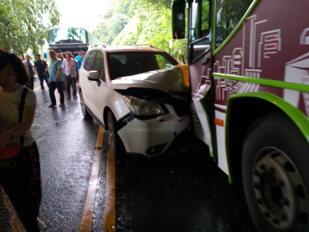 ▲▼ 阿里山公路上明隧道發生公車、客運及民眾自小客追撞車禍。(圖/記者翁伊森翻攝,下同)