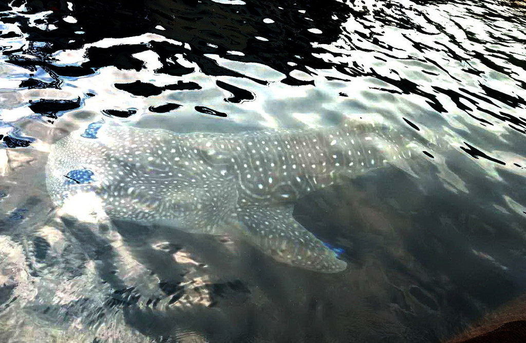 回大海了!請不要再來!一尾保育類豆腐鯊,18日下午誤闖宜蘭頭城石城外海的光榮定置漁場,漁民收網時發現這尾目測约5公尺長2噸重的嬌客,小心將豆腐鯊拖出定置漁場的網袋,並將豆腐鯊繫在漁船旁,快速將船駛往外海,在安全的海域,讓豆腐鯊回歸大海。