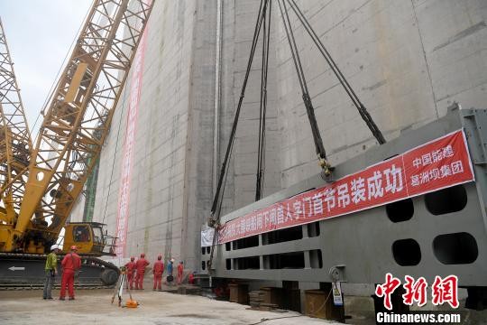 世界最高的船閘閘門:大藤峽水利樞紐船閘下閘首人字閘門,於17日上午啟動安裝,大藤峽水利樞紐位於廣西最大最長的峽谷出口處,船閘佈置在主壩左側,下閘首閘人字閘門設計高度47.5米,比三峽船閘人字閘門還高出9米,單扇門葉門寬20.2米,重量達1295噸,面積相當於兩個半籃球場大小。