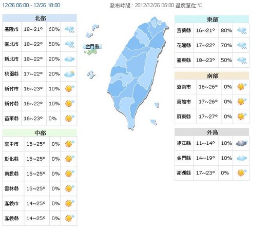 另外,中央氣象局提醒,26日台灣各地及澎湖、金門、馬祖大多為多雲到晴的天氣,東半部及大台北地區有短暫雨,台灣沿海空曠地區、恆春半島及澎湖、金門、馬祖、綠島及蘭嶼仍有較強陣風出現。