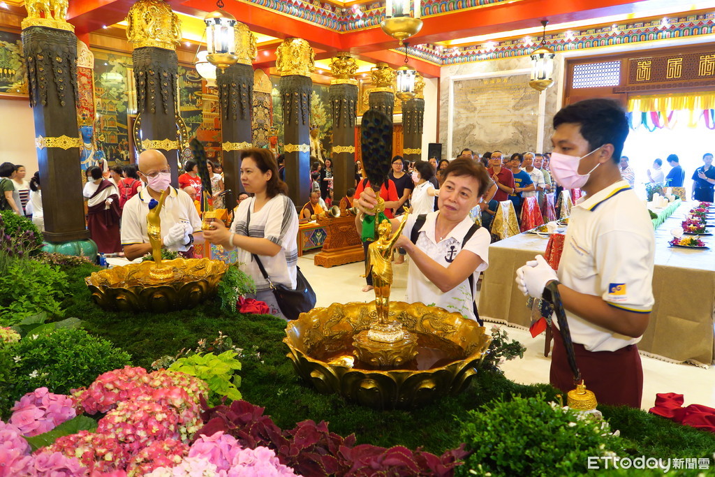 ▲紀念佛誕吉祥日,台南市左鎮噶瑪噶居寺進行「浴金佛大法會」及為舍利塔天香閣開光,十獅祥瑞獻佛大法會。(圖/記者林悅翻攝,下同)
