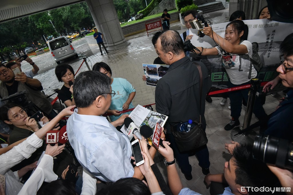 ▲柯文哲赴議會專案報告,松菸護樹志工團在市議會前陳抗。(圖/記者李毓康攝)