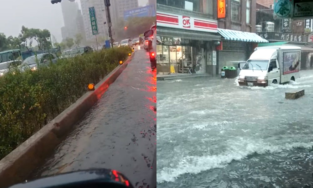 另外,許多網友則是在臉書不公開社團《細說淡水》中貼出照片和影片,只見大雨過後,淡水彷彿出現運河,淡水老街也淹大水,車子開過幾乎快看不到輪胎。當地民眾紛紛無奈表示,「陸上行舟小心謹慎」、「大海行車」、「淡水運河」。