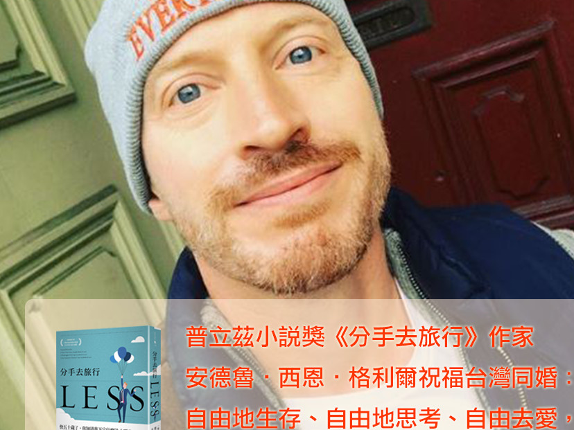 ▲《分手去旅行》男同志作家安德魯(Andrew Sean Greer)祝福台灣同婚:對所有情侶都是自由象徵!(圖/新經典文化提供)