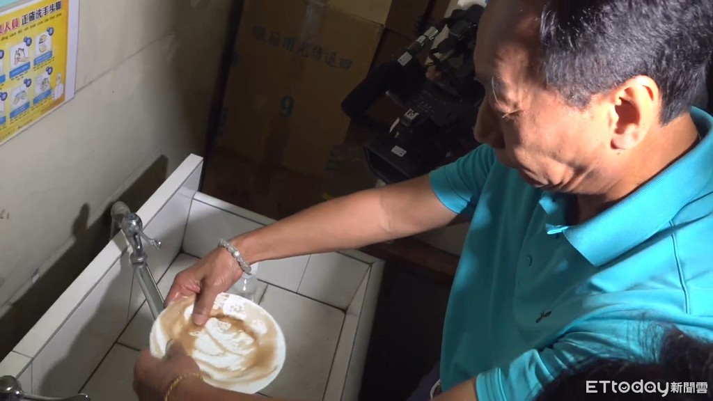 ▲▼郭台銘參訪清淨海公司試用環保材質洗潔劑洗碗後,拿起盤子猛舔,再舔自己的手指,表示對產品安全有信心。(圖/記者莊喬迪攝)
