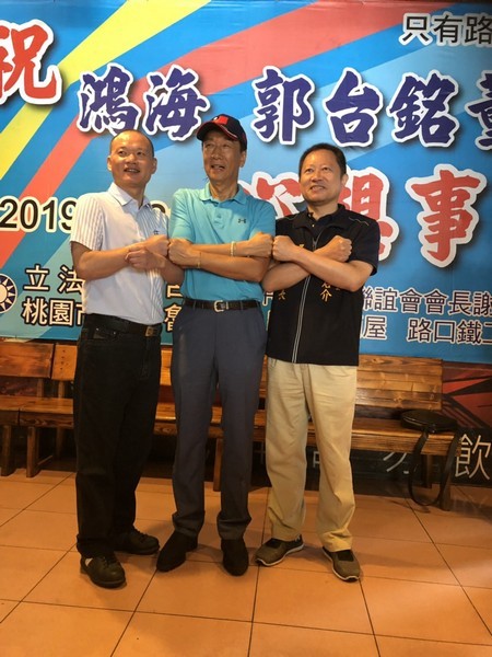 國民黨總統參選人郭台銘21日走訪桃園第二站,到中壢與里鄰區長座談,現場由台南市議員謝龍介的弟弟、中壢區金華里里長謝岩介主持。郭台銘認為,人民最大,里長是最重要的第一線,並表示有信心能贏得初選跟總統大選,屆時必將輕賦減稅,給地方更大的空間去發展。