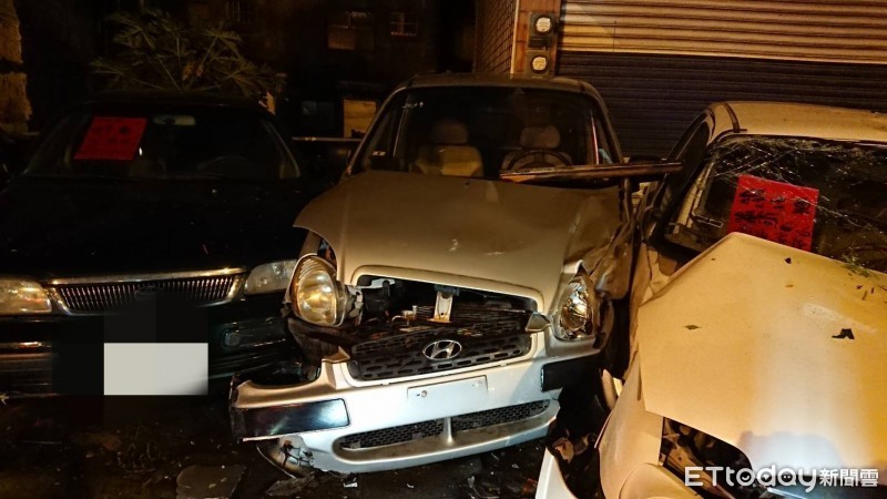 ▲駕駛自小客車的龔男撞上小貨車後再失控撞上路邊的待售中古車。(圖/記者洪正達翻攝)