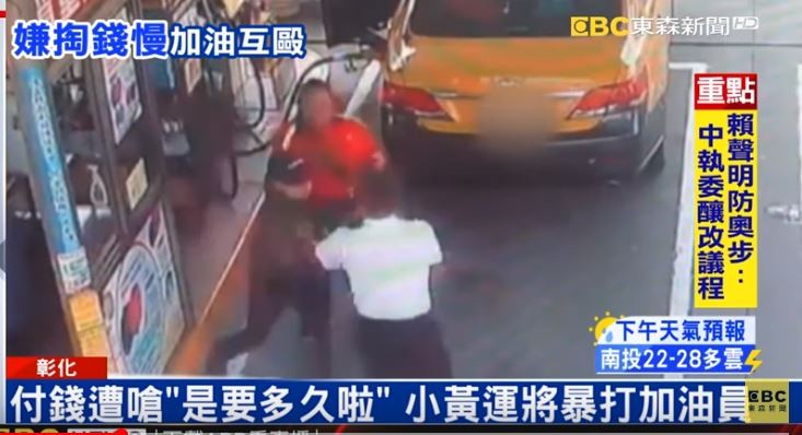 彰化秀水一間加油站發生一起員工與小黃運將暴打事件。梁姓小黃運將前來加油,李姓工讀生加油時,運將問「你怎麼臉色不好」,而工讀生竟回「不爽啦!要等多久」,運將瞬間怒氣衝天,跨過油槍衝到工讀生面前毆打,2人開始拉扯衝突。