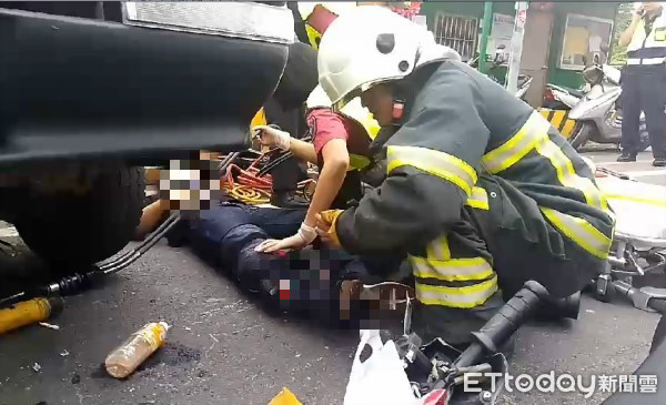 ▲苗栗發生一起貨車與機車碰撞的車禍。(圖/記者黃孟珍攝,下同)
