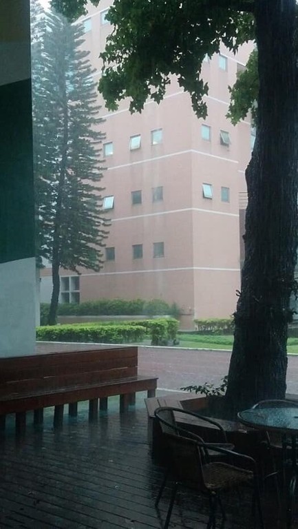 ▲因大雨驟降,中女中大樓出現「瀑布急流」,學生拍下PO網。(圖/翻攝自臉書《靠北中女中》,下同)