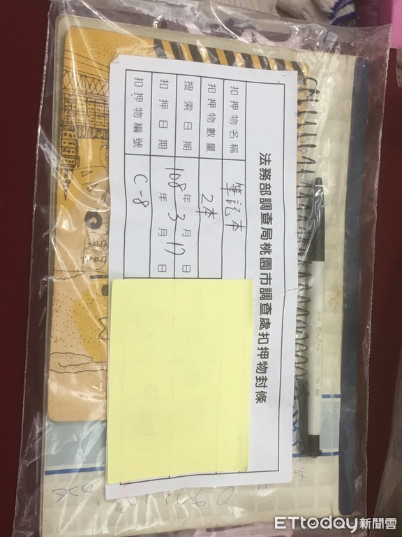 ▲調查局桃園調查站查出張姓男子製毒筆記本。(圖/記者沈繼昌攝)